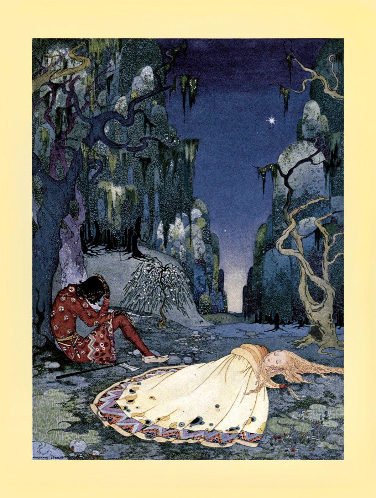 Virginia Sterrett Art Print: Ourson and Violette , Fantasy Illustration